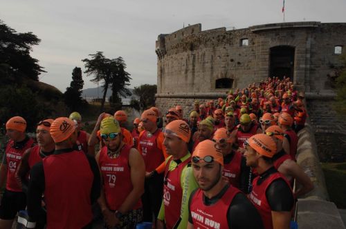 Alternance de 8 courses à pied et de 7 Natation : 1,350KM de Natation et 8,260KM de course à pied. Le demi-tour est effectué au niveau du Yacht club Toulonnais, à mi-parcours.