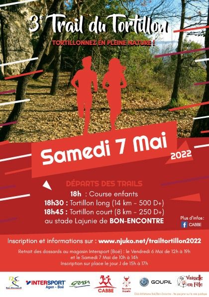 Trail du Tortillon, course nature de 8 km et 14 km dans les coteaux de Bon-Encontre + Une course enfant
