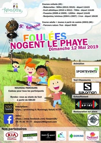Foulées de Nogent le Phaye. Course adulte et enfants. Cadeaux à tous les participants + Médailles à l'arrivée
