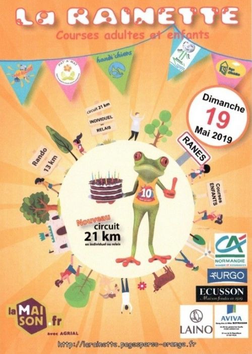 Atouts : le cadre (parc du château départ/arrivée), circuit route dans la campagne; Pour la 10ème édition 21 km en forme de 8 avec relais possible à mi-parcours dans le parc du Château de Rânes/nombreux lots à tous les participants; des courses pour tous les âges , familiale/restauration dans le parc. Course principale :à partir de juniors pour le 21KM et cadets pour le relais Catégories autorisées CA->V5.
