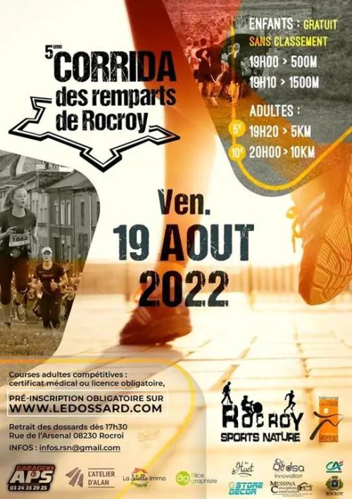 Corrida des Remparts de Rocroy. Les classements seront réalisés selon les catégories Belges (appartenance au Challenge Delobbe) Récompenses aux 3 premiers scratchs et au premier de chaque catégorie.
