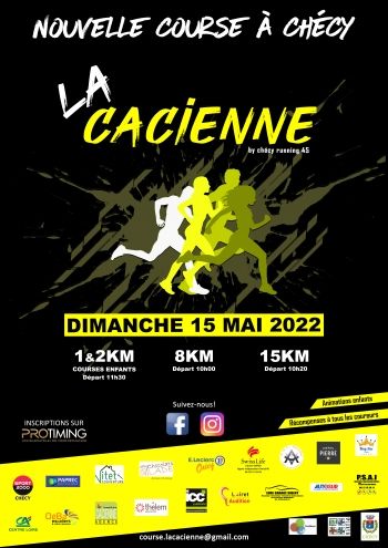 Course nature "La Cacienne" de 8 ou 15 Km. Plus une course de 1 ou 2 Km pour les enfants. Une seule boucle, tout terrain pour les 2 distances, accessible à tous, idéal pour découvrir Chécy, Mardié et Combleux en empruntant des chemins de halage et sentier du bord de Loire.