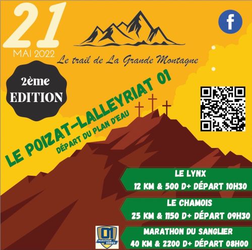 Le Trail de La Grande Montagne est organisée par l'association du Trail Poizatier. Cette première édition qui se déroulera sur la commune du Poizat-Lalleyriat comportera deux tracés de différentes distances et dénivelés. Venez découvrir le beau domaine de cette commune avec ses magnifiques points de vues et ses sentiers sympathiques.