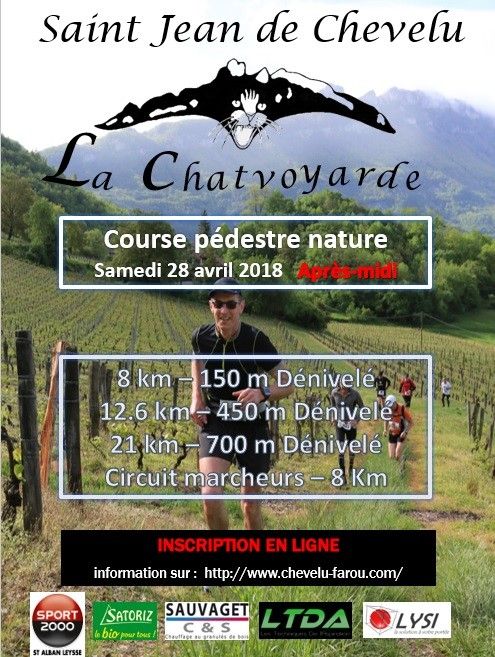 14ème édition de La Chatvoyarde. Ce sont 3 parcours de 8, 12,5 & 21 km environ sur les chemins communaux de SAINT-JEAN DE CHEVELU, SAINT PAUL et BILLIEME. Jusqu'à 500 coureurs sont accueillis par 80 bénévoles qui sont mobilisés pour vous ! La qualité de l'organisation, le parcours, la convivialité, les coureurs attendus et félicités un à un lorsqu'ils franchissent la ligne d'arrivée, voilà les raisons d'un tel succès pour cette course nature à 95% sur chemins dans le cirque naturel des Lacs de Chevelu.