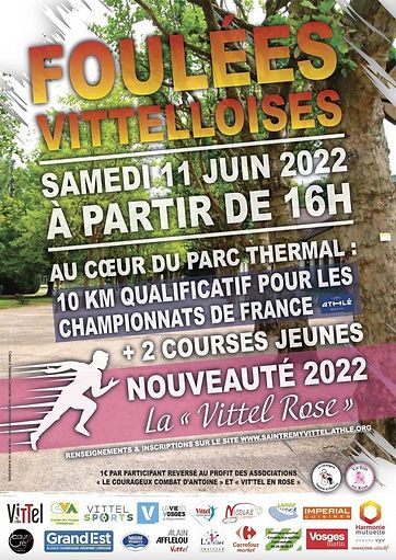 Courses organisées par l'AS Saint-Rémy Vittel athlétisme avec les 10 km qualificatifs pour les championnats de France. Nouveau : dossards, inscriptions, récompenses au palais des congrès de Vittel. Récompenses : Prime pour les 5 premiers hommes et 5 premières femmes ; Récompenses pour les 1ers de chaque catégorie ; Récompenses surprises parmi les arrivants.
