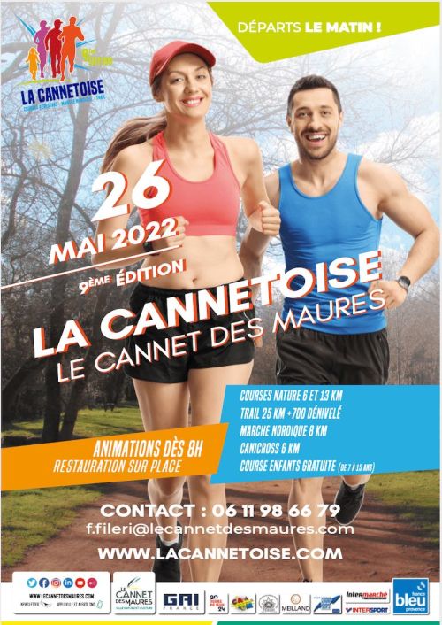 Course en boucle qui part du centre ville pour arriver sur un chemin en terre qui fait le tour d'un lac dans la pleine des Maures, pour arriver sur la montée du vieux Cannet et redescendre dans le village. Catégories autorisées CA->V5.