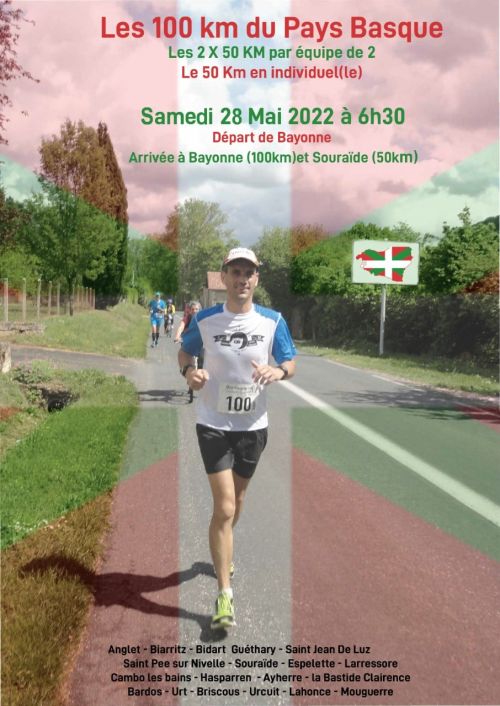 Course alliant le littoral Atlantique, l’intérieur du Pays Basque, ses montagnes sans les gravir, ses paysages, son architecture. 3 épreuves avec un départ et un parcours commun > 1 x 100 km – 1 X 2 X 50 km en relais de 2 coureurs – 1 X 50 km en individuel.