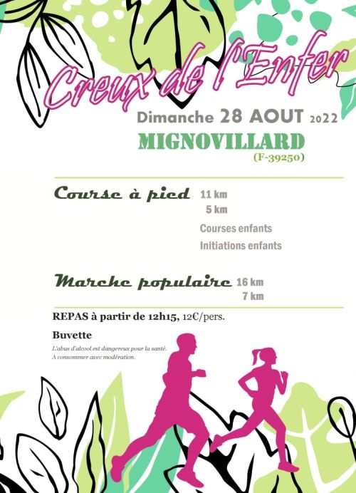 Nouvelle date, nouveaux horaires mais plaisir inchangé. Pour la 27ème édition du « Creux de l’Enfer », le comité des fêtes de Mignovillard change de période et profite de la fin de l’été pour remettre tout le monde sur pied. Les marcheurs ne sont pas oubliés et pourront profiter des paysages mignovillageois sur 3 parcours de 7, 12 et 17 km avec un départ prévu pour tous à 9h.