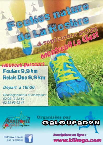 Noueau parcours cette année pour les Foulées Nature de la Rosière, départ du terrain des Sports, passage dans les sentiers pédestres et autour de l'étang de Montreuil Le Gast, deux boucles de 5 Km
