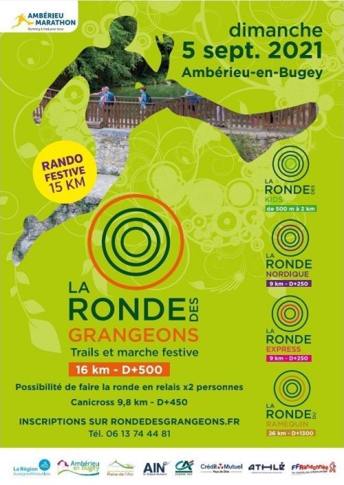 Avec la « Ronde » venez découvrir les contreforts du bas Bugey, à 30 minutes de Lyon, tout au long des chemins et des routes jalonnés par les vignes, les côteaux et les grangeons. Certains d’entre eux offrent la possibilité aux coureurs de se ravitailler, aux marcheurs de déguster les produits du terroir, au son des groupes de musique.