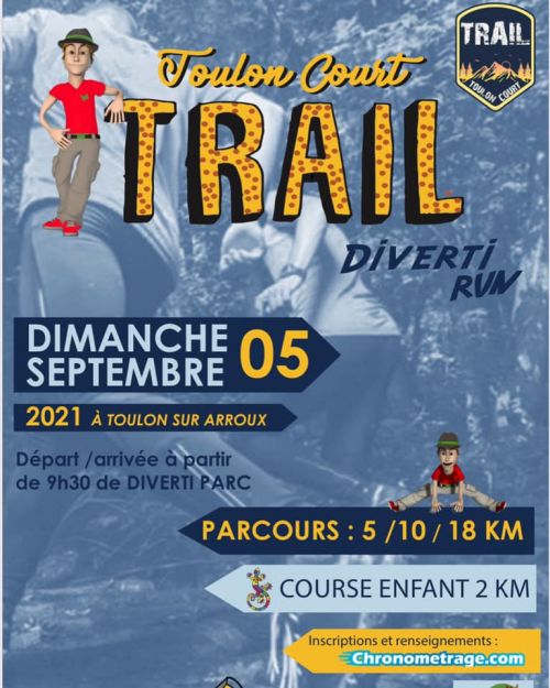 Diverti Run Toulon Court avec 3 parcours trail vallonés à la découverte des sentiers et chemins de Toulon-sur-Arroux en passant par son fameux parc d'attraction Diverti Parc, sur route et chemin avec une partie en aller-retour, marquage au 1km, 5km et 10km.