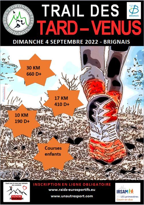 L’Association Raids Eurosportifs Brignais organise la 19ème édition du Trail des Tard-Venus au départ du complexe Pierre Minssieux à Brignais. Une course nature se déroulant sur chemins, sentiers et quelques portions goudronnées (35% maximum) est idéalement placé dans le calendrier au retour de la période estivale et avant les grands rendez-vous de fin d’année.