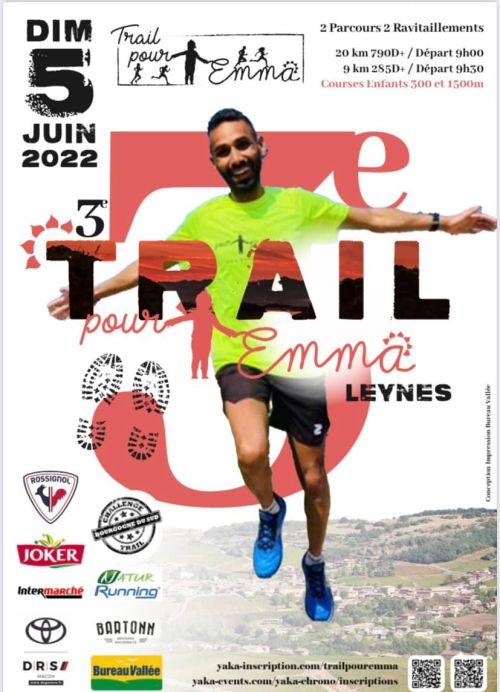Trail Pour Emma avec 2 parcours qui permettront à tous les coureurs de trouver leur bonheur. Notre trail sera donc composé de deux courses 09km et 20 km, qui évolueront dans « le bois de Fée », forêt qui surplombe le village de Leynes, cadre féerique assuré.