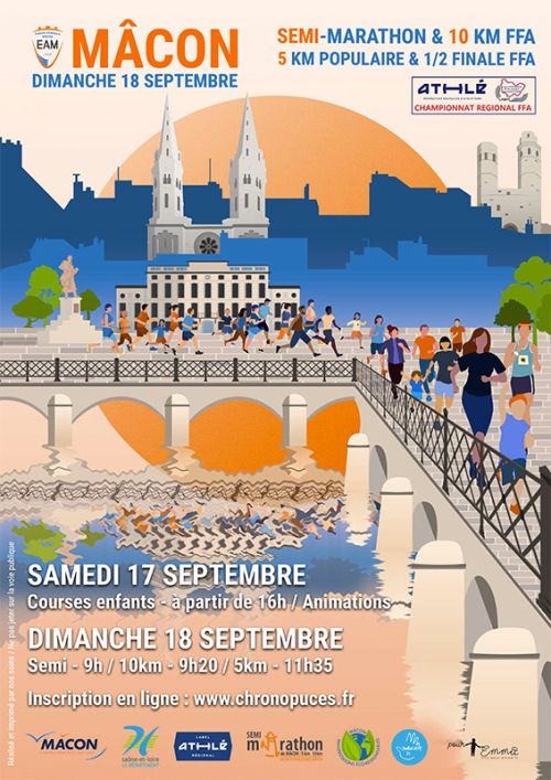 Le Semi-marathon et le 10 km sont mesurés, labellisés FFA et qualifiants pour les Championnats de France. Les départs sont donnés sur l'Esplanade Lamartine en bordure de Saône, devant la Mairie de Mâcon. Les courses suivent un tracé qui emprunte principalement la Voie Bleue le long de la Saône sur un parcours ultra-plat. Le semi-marathon et le 10km de Mâcon ont reçu le label Manifestations Éco-responsables de la Ville de Mâcon.