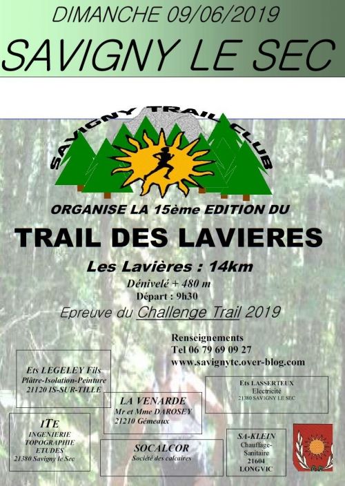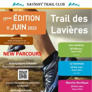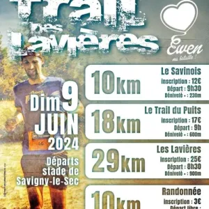 Trail des Lavières : Possibilité de s'inscrire le jour de l'épreuve jusqu'à 9h00. Le parcours sera identique à l'édition précédente. Récompense pour chaque participant et classement par catégories. Épreuve inscrite dans le challenge Trail.