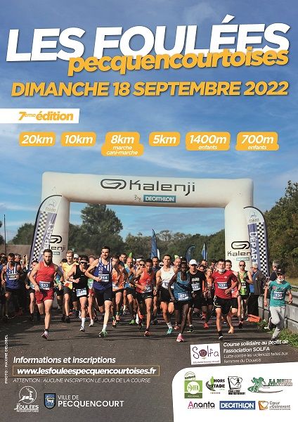 Fort de son succès, cette course à pied des Foulées Pecquencourtoises est véritablement devenue un temps fort et marquant de la vie Pecquencourtoise. Comme chaque année, la manifestation va attirer un public nombreux dans la VILLE qui sera également le théâtre de nombreuses animations. De plus, un village partenaires sera instauré à l'arrivée Place du Général de Gaulle. Il accueillera nos nombreux sponsors.