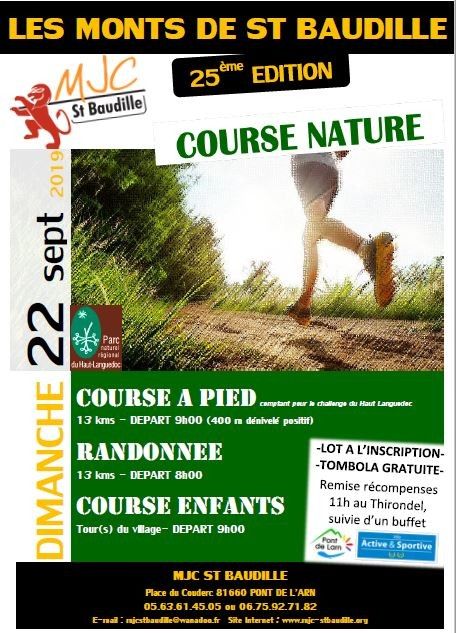La MJC St Baudille renouvelle sa traditionnelle course pédestre Les Monts de St Baudille comptant pour le challenge du Parc Naturel Régional du Haut Languedoc.