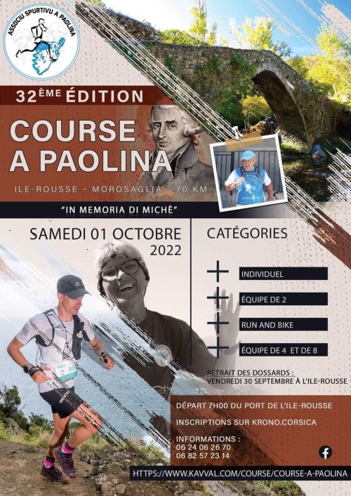 Ce sont 70 km de course pédestre sur route, du port de l'Ile Rousse jusqu'à Morosaglia qui peut s'effectuer en Individuelle, en équipe de 4 ou de 8 et en « Run and bike ». Cette course compte 1790 m de dénivelé positif et 917 m de dénivelé négatif. Cette course a été consacrée par la revue « jogging international » comme faisant partie des 50 plus belles courses du monde. Cette course est un moment de convivialité qui permet de réunir des gens de divers horizons pour partager le temps d’une journée la même passion et découvrir la Corse à travers des paysages splendides, des échanges avec des personnalités, des chants corses et un repas servi par l’ensemble des bénévoles.