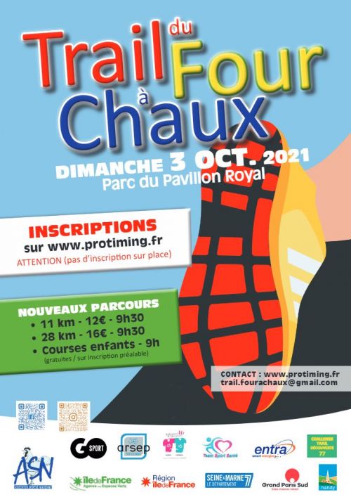 Vous aurez le choix des distances et du dénivelé. Ne ratez pas ce grand rendez-vous des traileurs franciliens. Un parcours technique et exigeant (mono-trace, chemins forestiers, …), un superbe paysage avec la vue plongeante sur la Seine, le tout agrémenté des couleurs de l’automne, une ambiance conviviale tout au long du parcours. Le Trail du Four à Chaux vous séduira à coup sûr ! L’occasion aussi de se retrouver entre copains après les vacances.