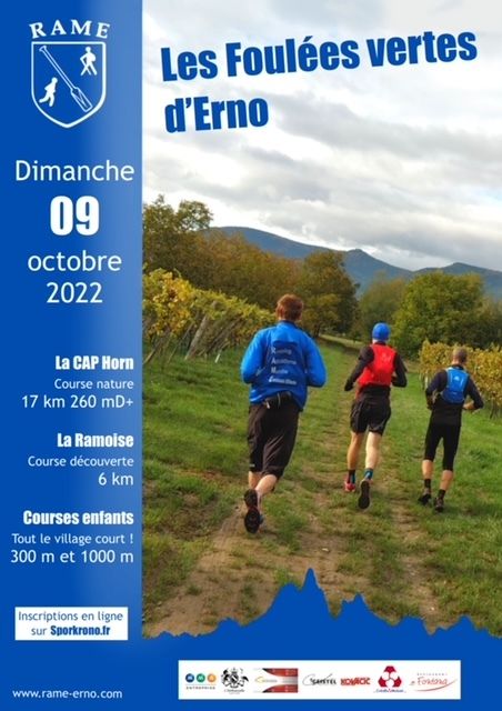 Les traditionnelles Foulées de la Bruche laissent place cette année à une épreuve totalement revue et plus exigeante: Les Foulées Vertes d'Erno. Ainsi le RAME vous propose un format plus nature avec une première course de 17 kms totalement nouvelle au nom pas si anodin, le Cap Horn.