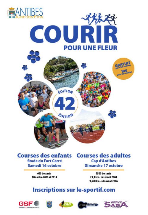 Courir pour une Fleur organisé par Le Service des Sports de la ville d’Antibes Juan les Pins. Course en bord de mer dans le cap d’Antibes.