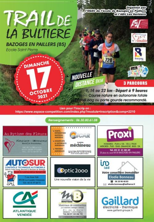 Trail de la Bultière avec 2 parcours trail. Parcours 80% de chemins, coteaux, bords de rivière et tour du barrage.