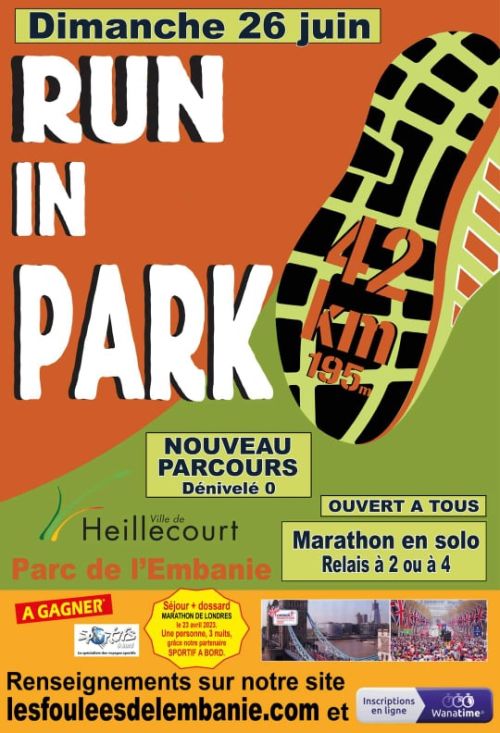 L’association « Les Foulées de l’Embanie » vous accueille pour participer au Run’in Park de Heillecourt (54) dans le parc de l’Embanie en pleine nature et de découverte. Plusieurs formules pour ce relais libre nature : – en solo – en relais libre à 2 – en relais libre à 4.
