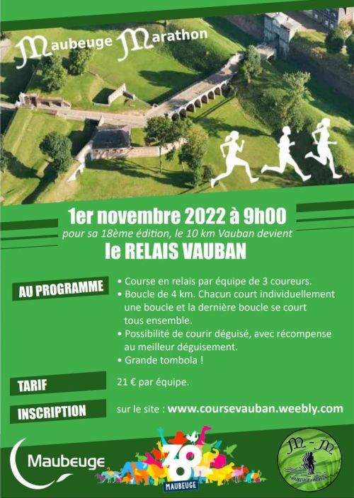 L'association Maubeuge Marathon organise le relais VAUBAN sur un circuit empruntant les artères de la ville. Le kilométrage sera balisé régulièrement sur le parcours.