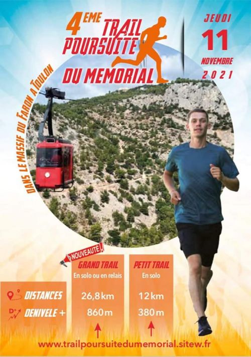 Trail Poursuite du Mémorial. Le départ a lieu à côté du Mémorial au sommet du Faron à Toulon. Le nombre de dossards est limité à 400 par trail.