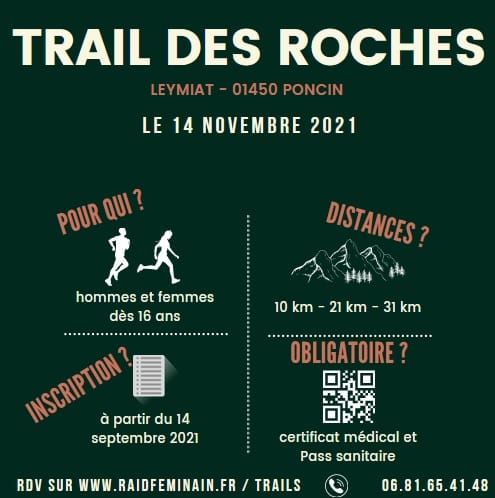 Le Raid Fémin'Ain organise le Trail des Roches avec 2 parcours trails au départ du Hameau de Leymiat, Place du Pré Rond.