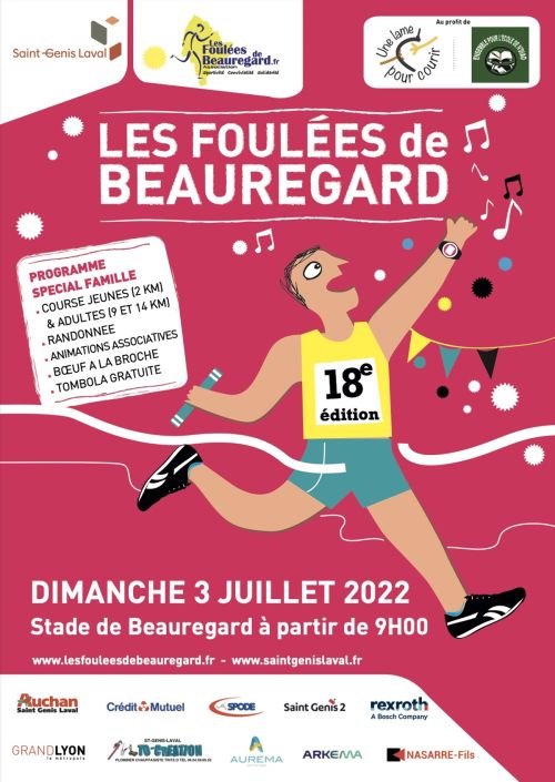 Les Foulées de Beauregard sont organisées par l’association “ Les Foulées de Beauregard ” en partenariat avec la Ville de Saint-Genis-Laval dans le cadre de la fête du sport et de la jeunesse. Epreuve conviviale et solidaire sur un circuit escarpé avec de nombreuses animations musicales. Superbe tombola pour tous les coureurs inscrits à l'avance.