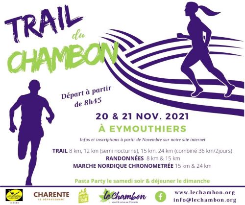 Le Conseil départemental de la Charente organise le Trail du Chambon au domaine du Chambon à Eymouthiers. Toutes les épreuves sont des courses nature pédestre et se déroulent sur des parcours balisés, au sein du site Natura 2000 de la vallée de la Tardoire.