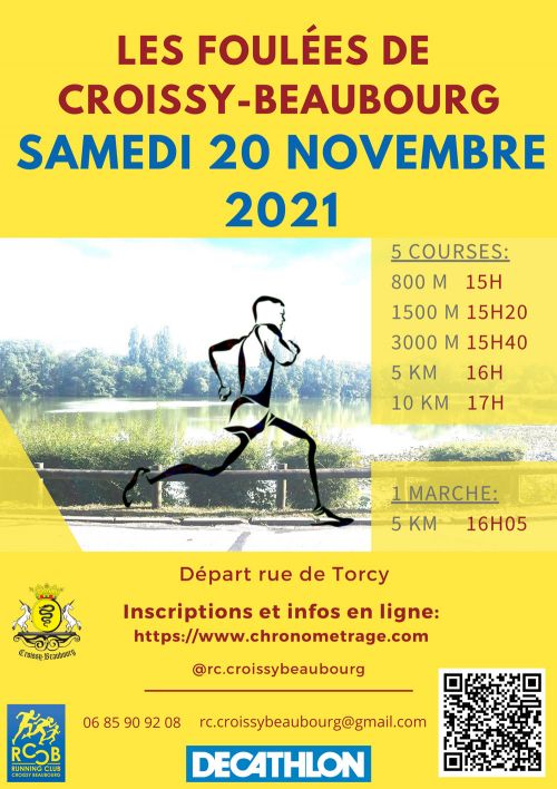 Les Foulées de Croissy Beaubourg vous proposent 5 courses qui se dérouleront à partir de 15h.
