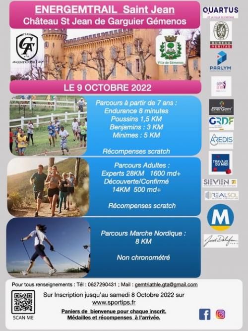 Le Gémenos Tri Athlé et le Trail Club de Provence vous proposent un petit bijou de Trail 100% sauvage, 100% authentique, au départ du village de Gémenos ! Un événement à ne manquer sous aucun prétexte ! Avec ses partenaires et l'énergie de tous, Le GEM TRI ATHLÉ organise l'EnerGemTrail. Entièrement sur la commune de Gémenos, 99% de chemins. Dans le respect des espaces naturels, avec des singles inédits et un décor grandiose!