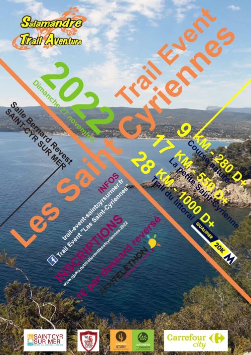 L’association "SALAMANDRE TRAIL AVENTURE" en collaboration avec la municipalité de Saint Cyr sur Mer organisent le TRAIL EVENT « Les Saint Cyriennes ». Courses pédestres sur chemins et sentiers.