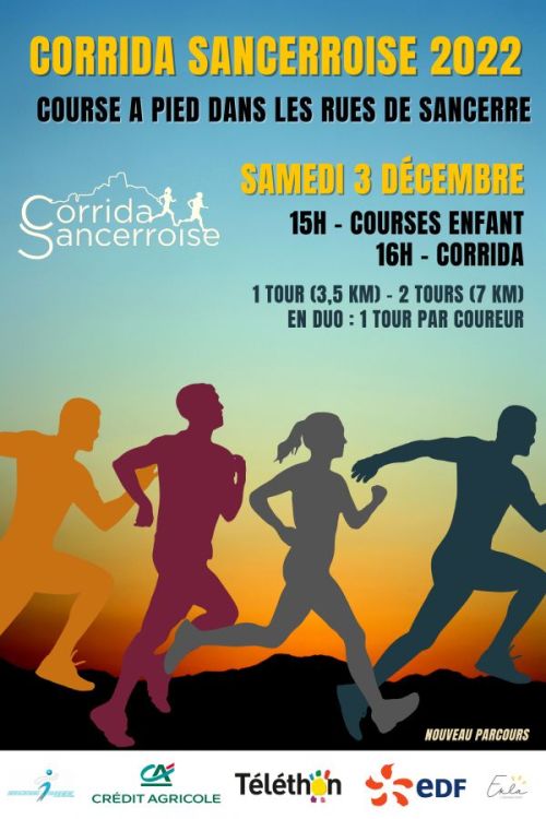 Corrida dans les rues et ruelles de la vieille ville de Sancerre à la nuit tombante, dans le cadre de l'animation du Téléthon dans la ville de Sancerre.