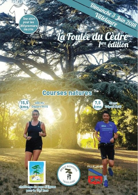 Le club Esprit Running Villelaure organise, avec le soutien de la ville de Villelaure, une course pédestre ouverte à tous à Villelaure. Deux distances sont au programme : 7,5 kms sur chemins et petites routes sans grande difficulté avec un dénivelé de 60+, 15,5 kms principalement sur chemins forestiers, très vallonné.