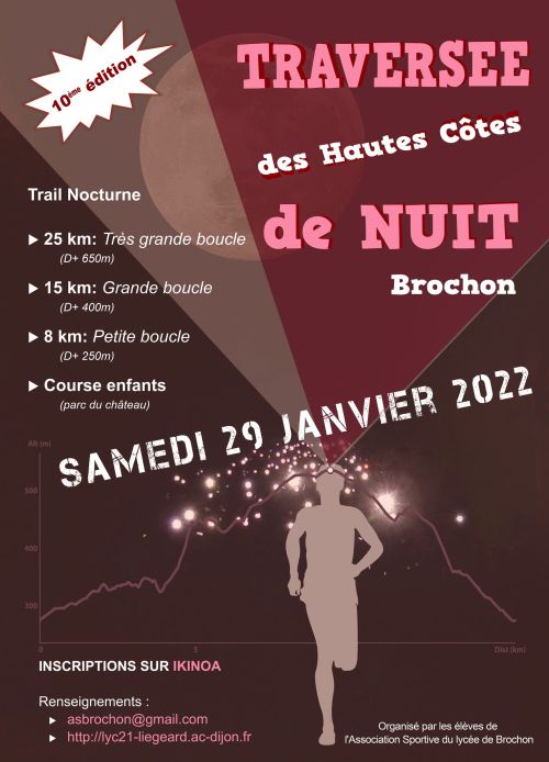 L'association sportive du lycée de Brochon et l'association Côte et Sport de Messanges organisent un "nouveau" trail nocturne, à travers les hautes côte de nuit, qui partira de la commune de Messanges pour rejoindre Brochon. Le parcours se déroule principalement sur sentiers et chemins (très peu de bitume).