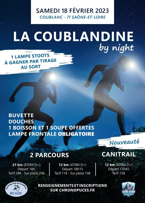 Le Running Club de Coublanc vous propose de découvrir nos sous- bois, sentiers, dans notre village aux portes du Brionnais entre Côte Roannaise et beaujolais mais cette fois-ci en hiver et à la tombée de la nuit ! (Préparez vos frontales !) Nouvelles sensations garanties sur 2 parcours proposés alternants 80 % de chemins techniques et 20 % de route de transition.