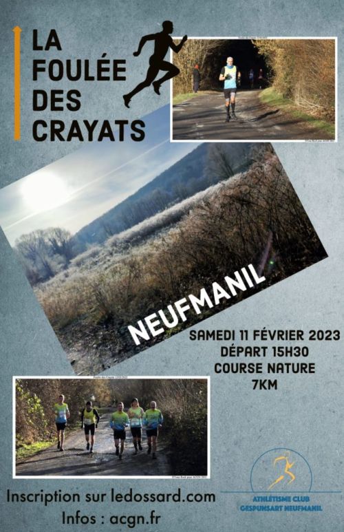 Venez nombreux participer à cette édition de la foulée des Crayats à Neufmanil pour une course nature de 7kms.