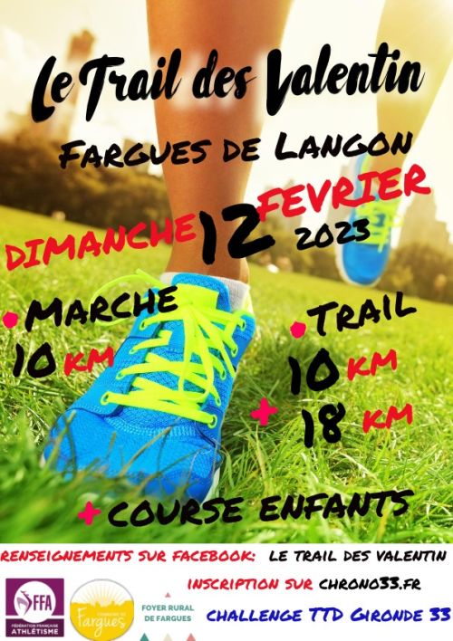Le foyer rural de Fargues de Langon organise le TRAIL DES VALENTINS.