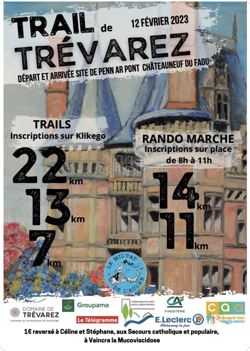 Après une traversée du Pont Du Roy, la boucle vous permettra de découvrir des sous-bois et chemins creux de la campagne châteauneuvienne, la chapelle Notre Dame des Portes, les remparts de la ville. Ensuite vous longerez l’Aulne et après quelques sentiers, ce sera la montée vers le magnifique site de Trévarez, et son Parc ; des vues uniques à profiter ! Il sera alors déjà temps d’engager la descente afin de rejoindre la ligne d’arrivée !