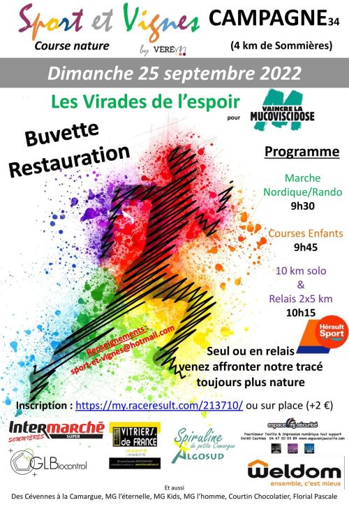 Le dernier dimanche de septembre , nous vous donnons rendez-vous à Campagne (à 4 km de de Sommières) pour soutenir l'association Vaincre la Mucoviscidose dans le cadre des Virades de l'Espoir