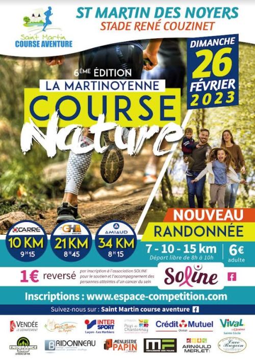 Après le succès qu'ont rencontrées les premières éditions de la martinoyenne grâce à votre forte participation, les membres de l'association Saint Martin Course Aventure accompagnés de leurs bénévoles, commissaires et partenaires sont heureux de vous convier à la 4ème édition de notre course et randonnée nature. Au programme : 3 courses adultes et 2 circuits de randonnée pédestre. Chaque coureur selon son niveau et ses envies pourra se dépasser et découvrir notre patrimoine culturel local en se promenant dans la campagne environnante martinoyenne. Les randonneurs inscrits sur place s'élanceront librement sur le circuit de leur choix (5kms accessibles aux poussettes ou 10kms).