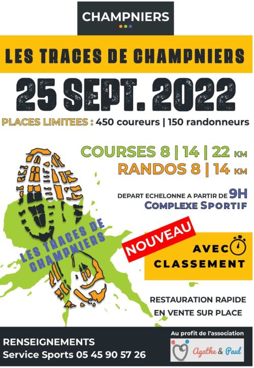 Depuis 2015, la commune organise un trail mêlant courses et randonnées pédestres. L’objectif, est toujours de faire découvrir la commune autrement qu’en empruntant les routes traditionnelles. On peut ainsi parcourir Champniers en passant dans des sous-bois, des forêts, des chemins, des sentiers ou encore des monotraces en évitant un maximum le bitume des routes. Depuis sa première édition, tous les bénéfices ont été reversés à une association d’enfants et/ou adultes atteints de handicap ou de maladie, avec un prix de participation moindre pour permettre à un maximum de personnes de venir participer.