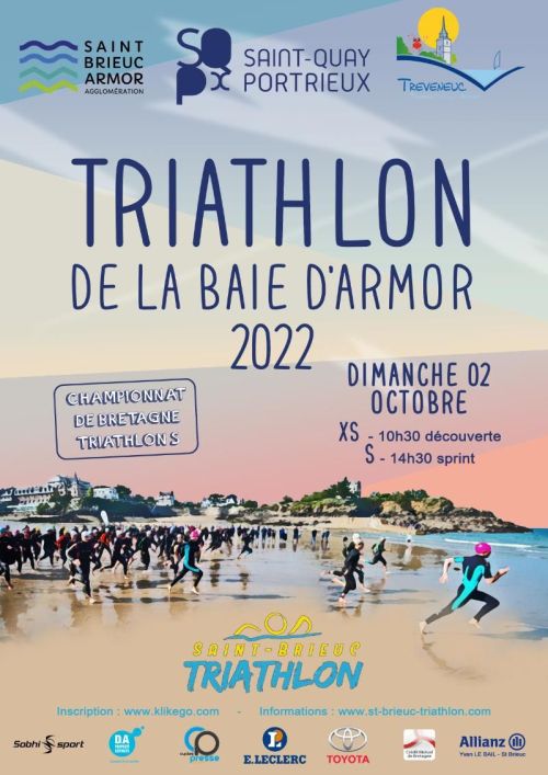 Le club de Triathlon de St-Brieuc, St-Brieuc Agglomération Baie d'Armor, la Ville de St-Quay portrieux et la Ville de Tréveneuc sont heureux de vous accueillir sur le site de la plage du Casino de St Quay Portrieux pour le Triathlon de la Baie d'armor, format S et XS.