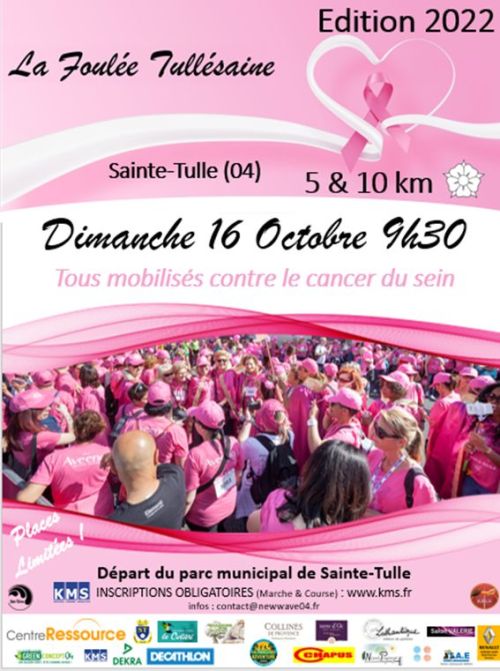 Dans le cadre d’octobre Rose New Wave vous propose de tous vous mobiliser en venant assister à l’évènement que nous organisons, en partenariat avec le club d’athlétisme de Sainte-Tulle. La Foulée Tullésaine c’est 3 courses différentes : 5 km, 10 km et une course pour enfants de 900 mètres.