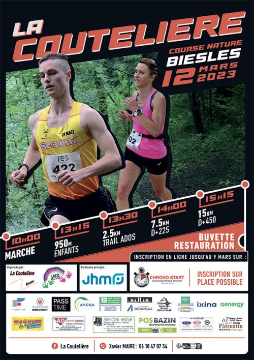 La course nature de Biesles est organisée par l'Association des Parents d'Elèves de Biesles. La Coutelière aura lieu à Biesles en Haute-Marne.