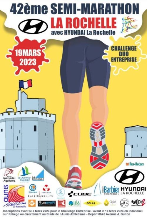 L’AUNIS ATHLETISME organise le Semi-Marathon de La Rochelle, avec le concours de la Ville, du Département de Charente-Maritime, de la Direction Départementale de la Cohésion Sociale de la Charente-Maritime, de la région Nouvelle Aquitaine et de ses partenaires. L’épreuve, à label national, est classante, qualificative pour le Championnat de France et elle est soumise à la réglementation FFA relative aux courses Hors Stade.