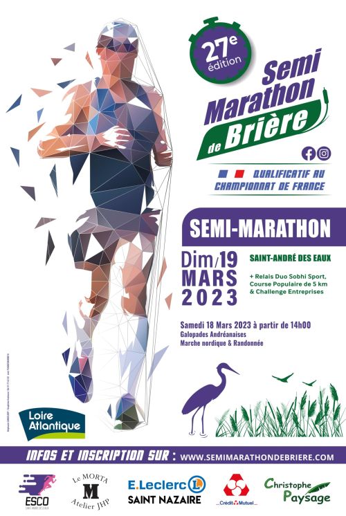 Semi très plat entre Mer et Brière, superbe décor naturel sur 30% de chemins stabilisés. Venez vous qualifier au Championnat de France dans les meilleures conditions..!! Vous pouvez aussi faire le Semi en Duo ou profiter de notre course populaire de 8Kms.